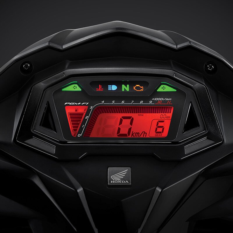 Panel meter full digital yang futuristik, memberikan sensasi lebih modern dan sporty. Melesat dengan sensasi 6 kecepatan jadi lebih seru.Front Wide Tubeless Tire & Disc Brake