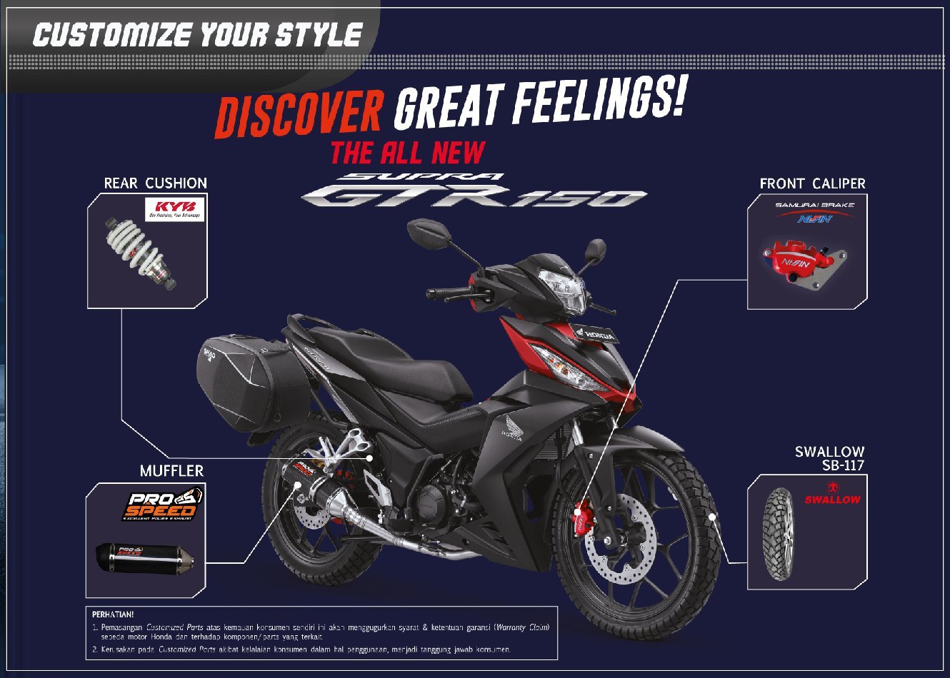 Dapatkan Diskon khusus untuk setiap pembelian Honda GTR 150 selama periode bulan ini.