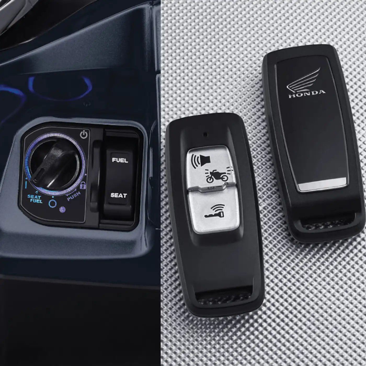 Inovasi teknologi canggih yang dikendalikan oleh remote, dimana tidak lagi memerlukan kunci mekanis untuk menghidupkan mesin dan mengunci stang. Terintegrasi dengan Immobilizer, sistem keamanan Anti Theft Alarm dan Answer Back System untuk mempermudah mencari posisi motor di lokasi parkir.New LED Headlight